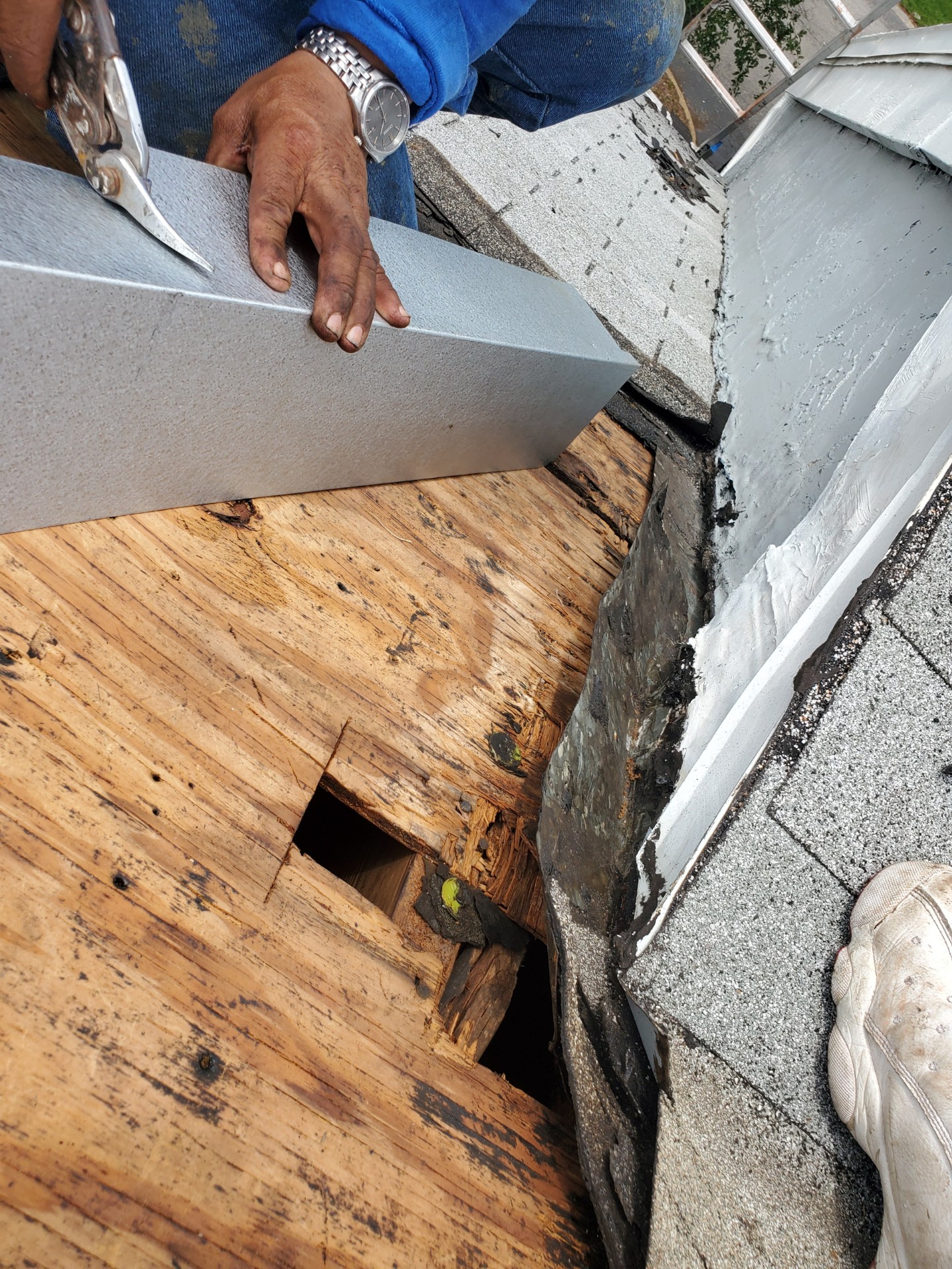 - Install new lead flashing around all plumbing stacks.